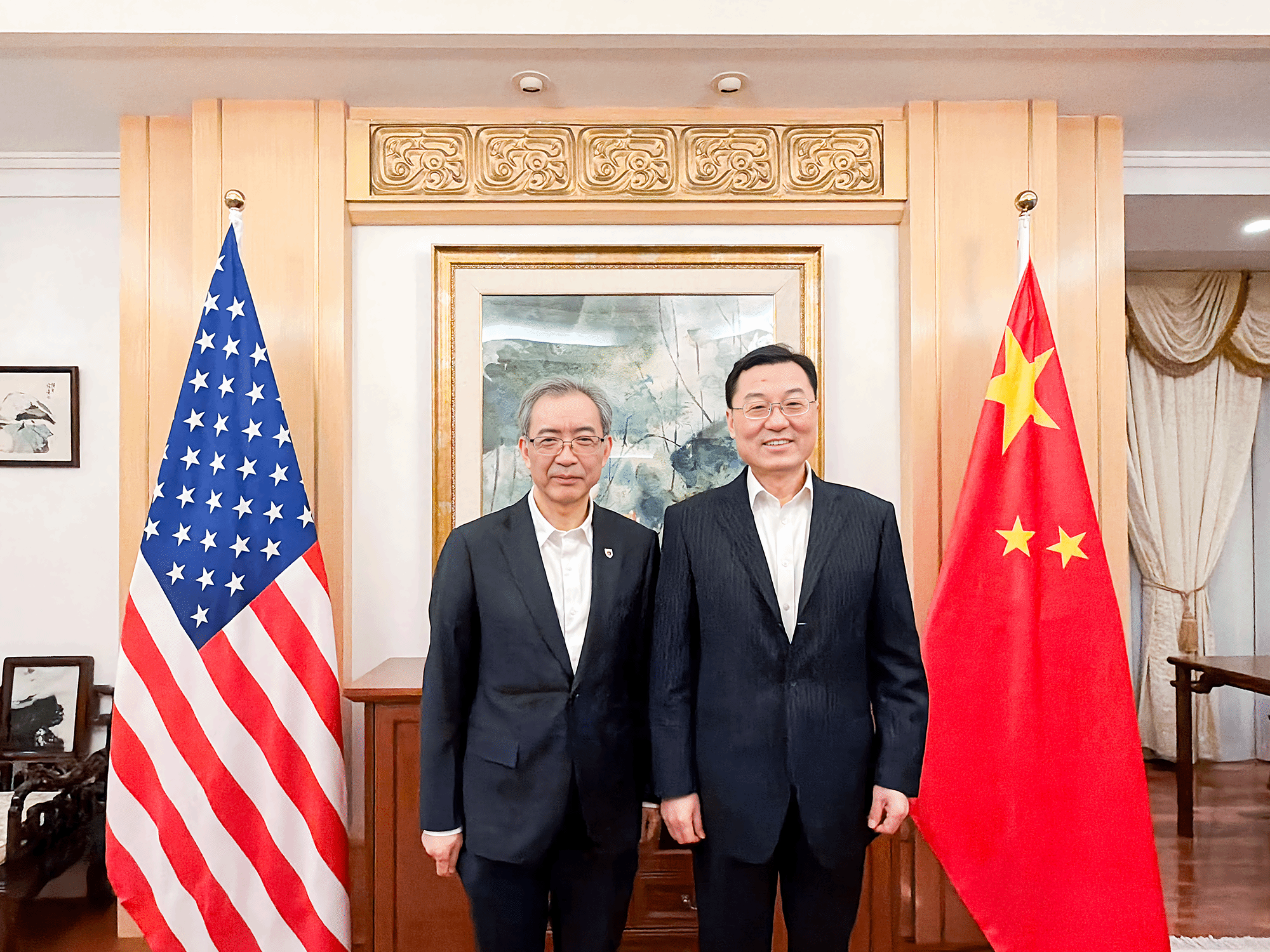 访美期间,谈哲敏一行还拜会了驻美国大使谢锋,交流了大学对美合作成果与未来规划。谈哲敏应邀在大使馆就“极端天气气候与中美科技合作”主题作专题讲座。