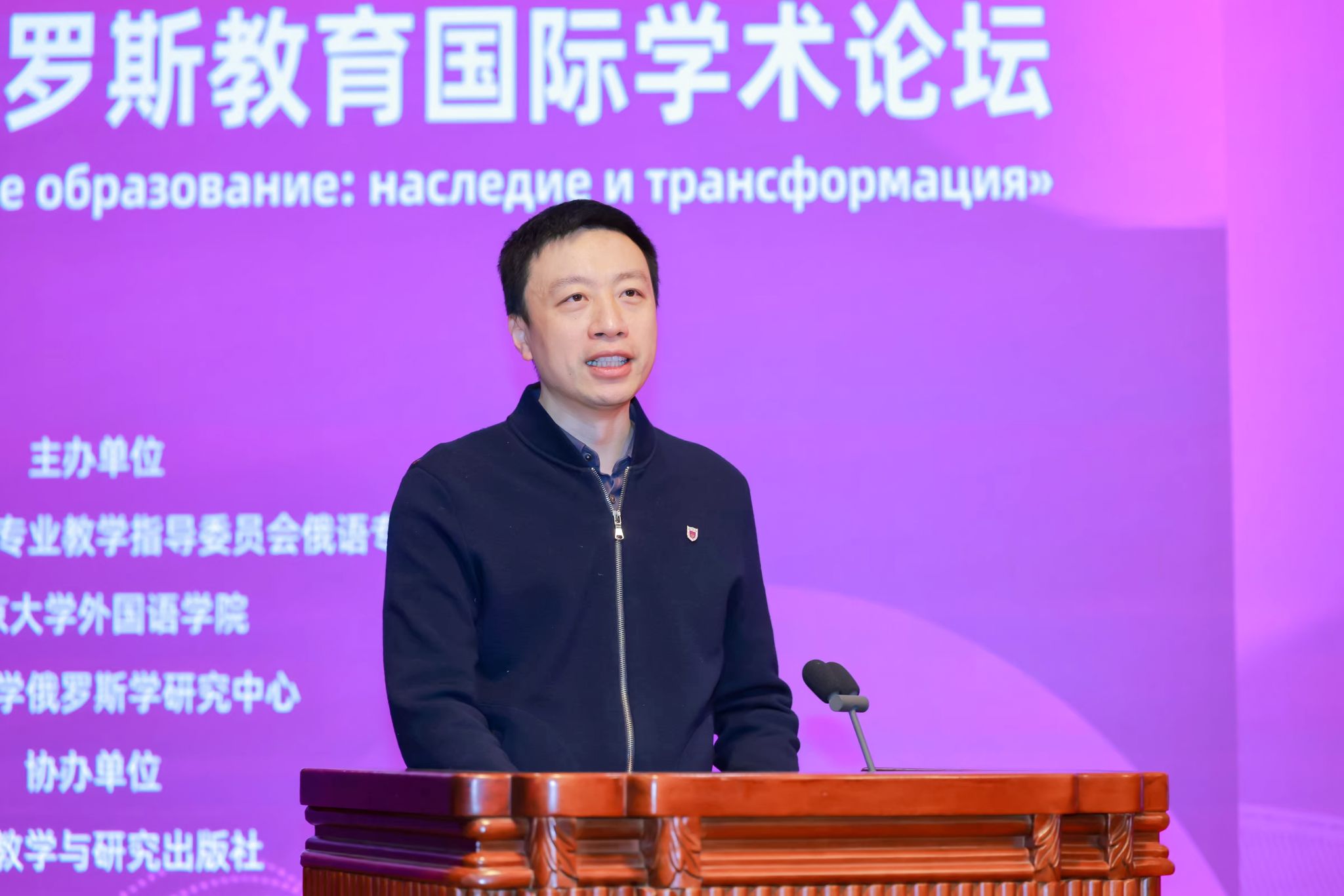 闻羽对与会嘉宾表示热烈欢迎,并介绍了外国语学院和俄罗斯学研究中心在俄罗斯研究方面的重要成果,强调在全球化背景下深化中俄教育合作与学术对话的重要意义。